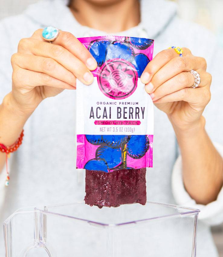 Keep packs frozen until you’re ready to use them. Each 3.5oz portion is pre-measured, so there’s no guesswork… just easy smoothies and bowls. Quick tip: run the pack under water for a few seconds to help the fruit slide out more easily. If you don’t use the whole pack, keep it cold and pop it back in the freezer for next time.