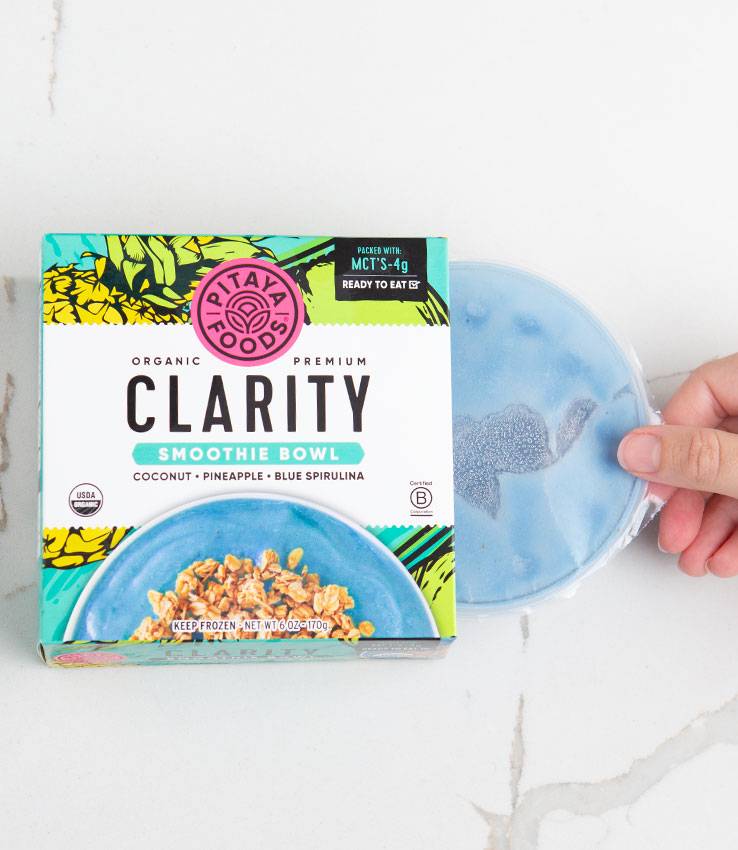 Experience the taste of paradise in our Clarity Smoothie Bowl. Bursting with tropical flavors and loaded with brain-fueling nutrients to keep you energized and focused, this creamy fusion of coconut, pineapple, and blue spirulina is a quick and delicious solution for breakfast, lunch, or a snack on the go. Top with our gluten-free granola for added protein and a satisfying crunch.