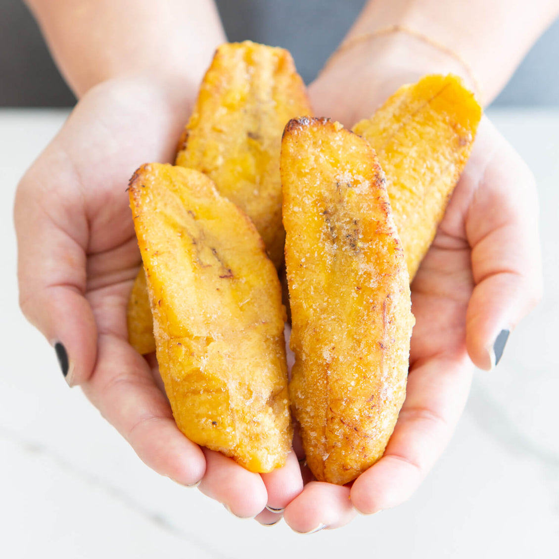 Plantains are a tropical fruit that resemble bananas but are typically larger, have a thicker skin, and are used in both sweet and savory dishes worldwide. Young plantains are savory, while our plantain baked ripe slices are sweet and have a creamy consistency like a banana.