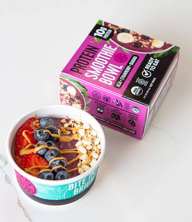 This classic blend of acai, strawberries, and banana now comes with 10g of plant-based protein in every bowl. Creamy and spoonable, it’s made with organic fruit and no artificial flavors, colors, or preservatives. A convenient way to enjoy real smoothie shop flavor for breakfast, post-workout, or anytime you need a satisfying snack.