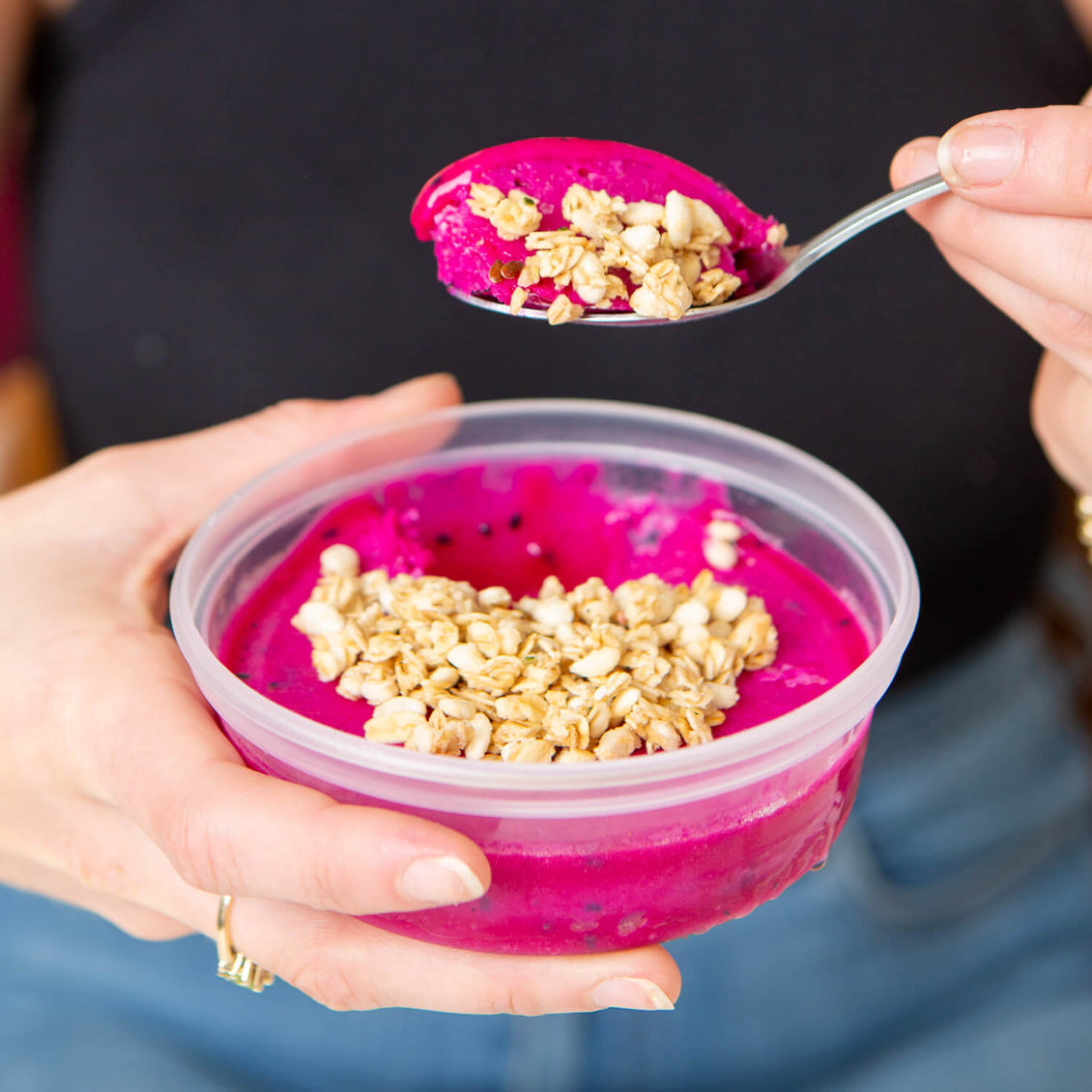 Our smoothie bowls don’t require a microwave or a long wait before eating. Just grab a spoon and enjoy.